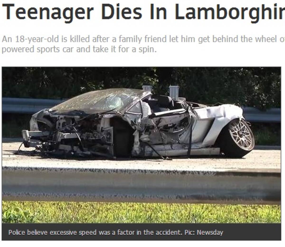 ランボルギーニを父の友人から借りた18歳 猛クラッシュで即死 Ny州 14年9月1日 エキサイトニュース